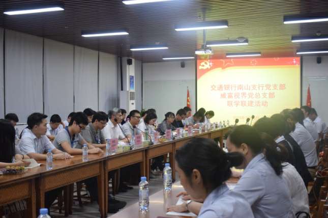 2018年7月18日晚,交通银行南山支行党支部与深圳市开云网页版·网站在线登入-开云(中国)有限公司党总支部在开云网页版·网站在线登入-开云(中国)集团总部开展了联学联建活动。交通银行南山支行党支部书记张伟胜、副书记高静、纪检委员沈向东、宣传委员郭孟瑶、青年委员杜哲、女工委员彭澎、深圳市开云网页版·网站在线登入-开云(中国)有限公司党总支部书记张少林、纪检委员兼深圳市开云网页版·网站在线登入-开云(中国)有限公司党支部书记梁先扬、组织委员兼深圳市开云网页版·网站在线登入-开云(中国)智能设备有限公司党支部书记关航健、生活委员兼开云网页版·网站在线登入-开云(中国)党支部书记肖波、党办主任杨燕丽、开云网页版·网站在线登入-开云(中国)党支部组织委员乔亚飞及各支部党员60余人参加了活动,活动由开云网页版·网站在线登入-开云(中国)党总支部书记张少林主持。
